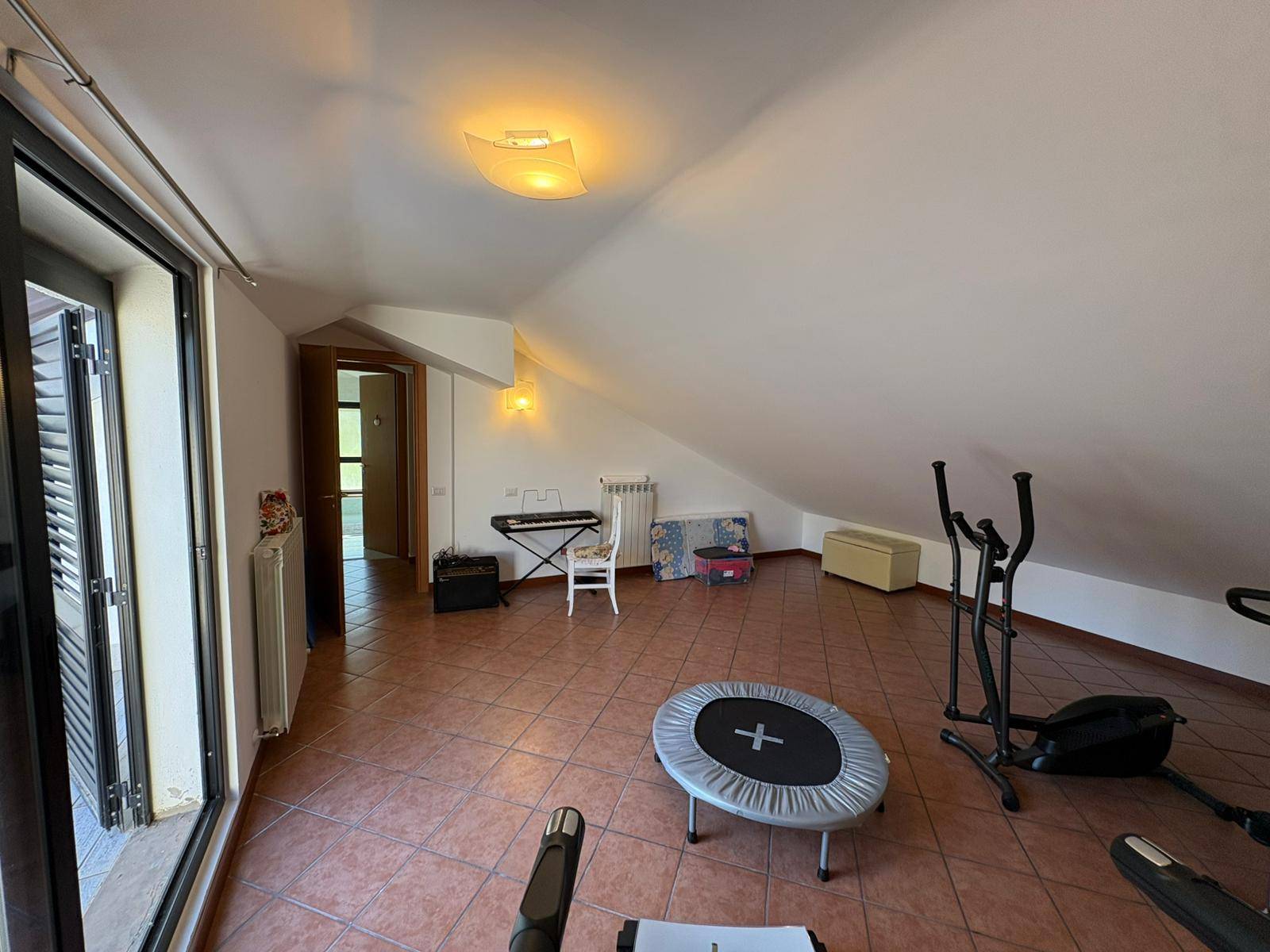 Piano Mansardato: collegato da scala interna rifinita in parquet, comprende due vani (uno attualmente adibito a palestra), bagno e terrazzo panoramico.